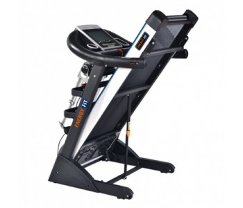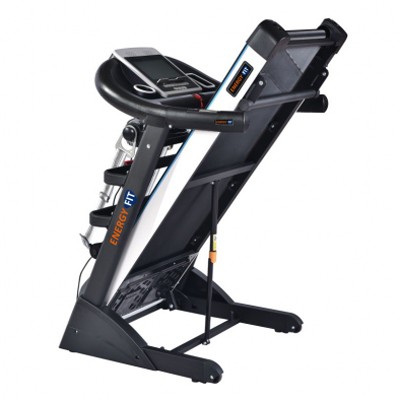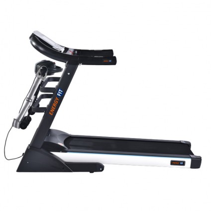 Бігова доріжка EnergyFIT 828а - просунута версія моделі 828, доповнена вібромасажером. Розрахована на користувачів з вагою до 140 кг, двигун потужністю 3 к. с. (пікові 3,5.) розвиває швидкість до 16,8 км/год, що дозволить тренуватися з максимальним результатом як новачкам, так і професійним спортсменам. Кут нахилу становить від 0 до 15%. Бігове полотно зроблено з багатошарового матеріалу з протиковзкими властивостями. Також є дворівнева подвійна система амортизації.