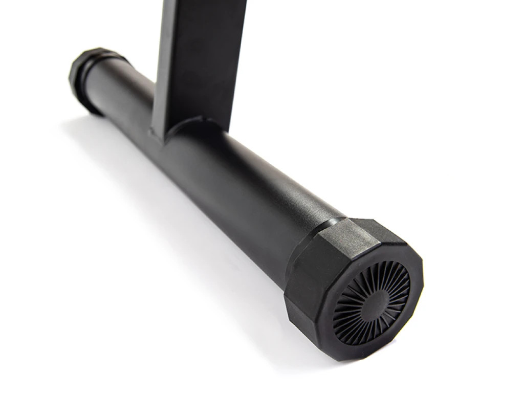 Задні ніжки тренажера обладнані спеціальними регуляторами, які забезпечують пристрою стійкість і баланс на будь-яких твердих поверхнях, зокрема навіть на нерівних.