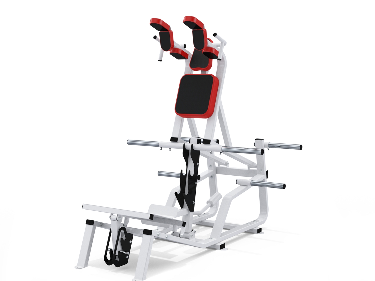 Тренажер призначений як для класичних гак присідань, так і для детального опрацювання сідниць і м'язів стегна. На тренажері реалізовано два види посадки тренується, перший - спиною до основної спинці і другий - упор подушок тільки на плечі і особою до основної рами. Майданчик для ніг регулюється за кутом нахилу для зміщення навантаження і більш точної опрацювання м'язів, для чого потрібно просто переставити упор на потрібну висоту з трьох можливих положень.