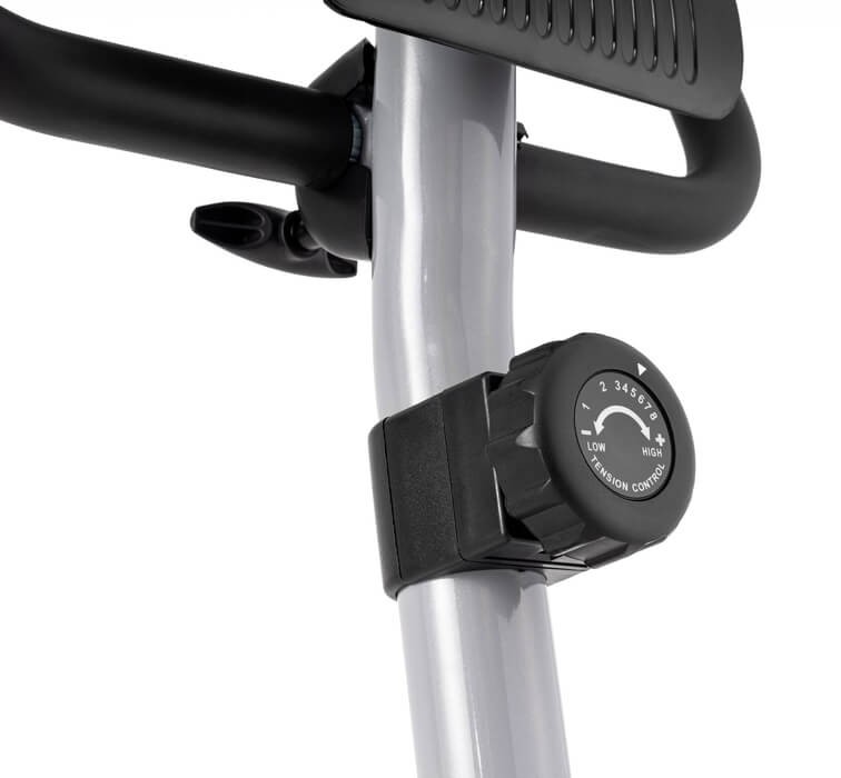 Вертикальний велотренажер моделі HS-2050H Sonic від Hop-Sportобладнаний спеціальною системою, яка дозволяє користувачеві самостійно змінювати рівень навантаження в залежності від своїх фізичних можливостей. Відрегулювати його можна за допомогою особливої ручки-регулятора, розташованої на центральній кермовій колонці, на будь-якому з 8 доступних рівнів. Зазначимо, що змінити навантаження можна навіть під час тренування — жодних зупинок тренажера, просто налаштуйте регулятор на потрібний рівень і далі тренуйтеся вже в комфортнішому режимі.