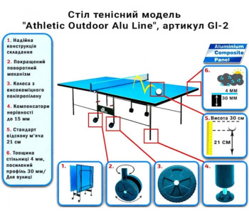 - Кращий відскок м’яча — композитна структура забезпечує стабільність та пружність, наближену до ігрових столів для приміщень