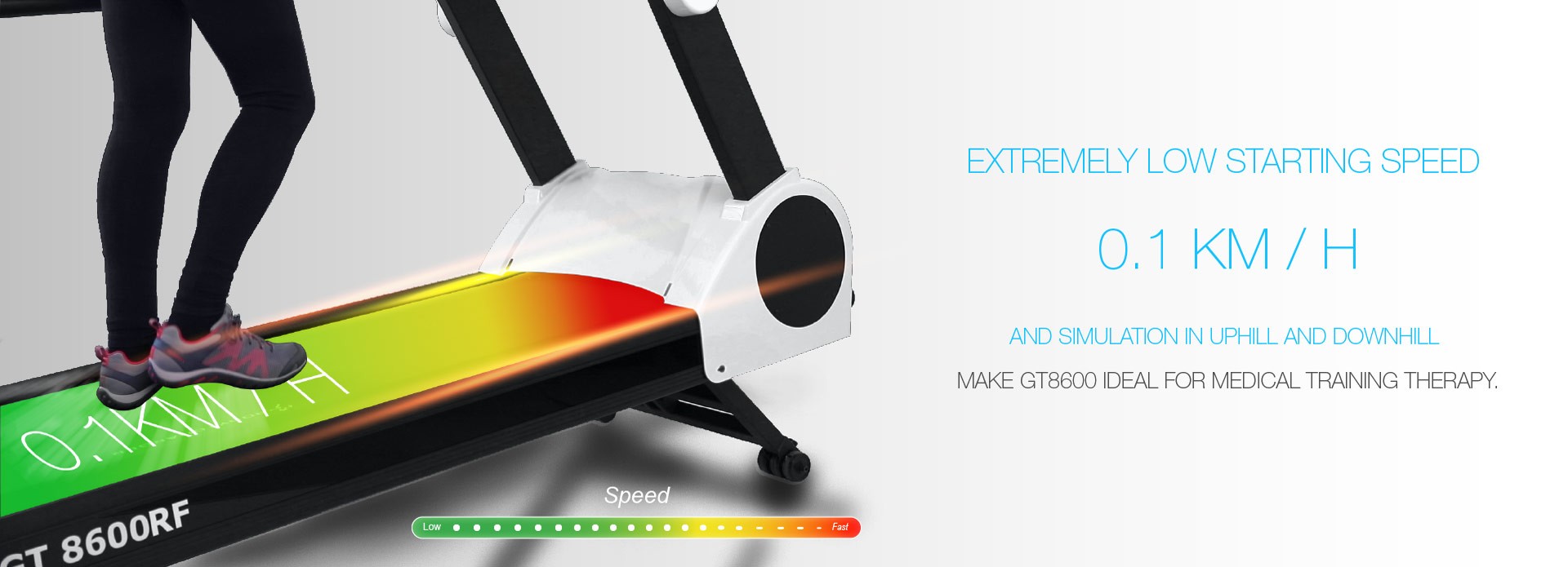 Моторизована бігова доріжка Body Charger GT8600RF створена спеціально для відновлення після травм, операцій і неврологічних захворювань. Завдяки потужному сервомотору, двосторонньому руху полотна, низькій стартовій швидкості (0,1 км/год) та широким можливостям налаштування — ця модель ідеально підходить для клінік, реабілітаційних центрів та домашнього використання у складних випадках.