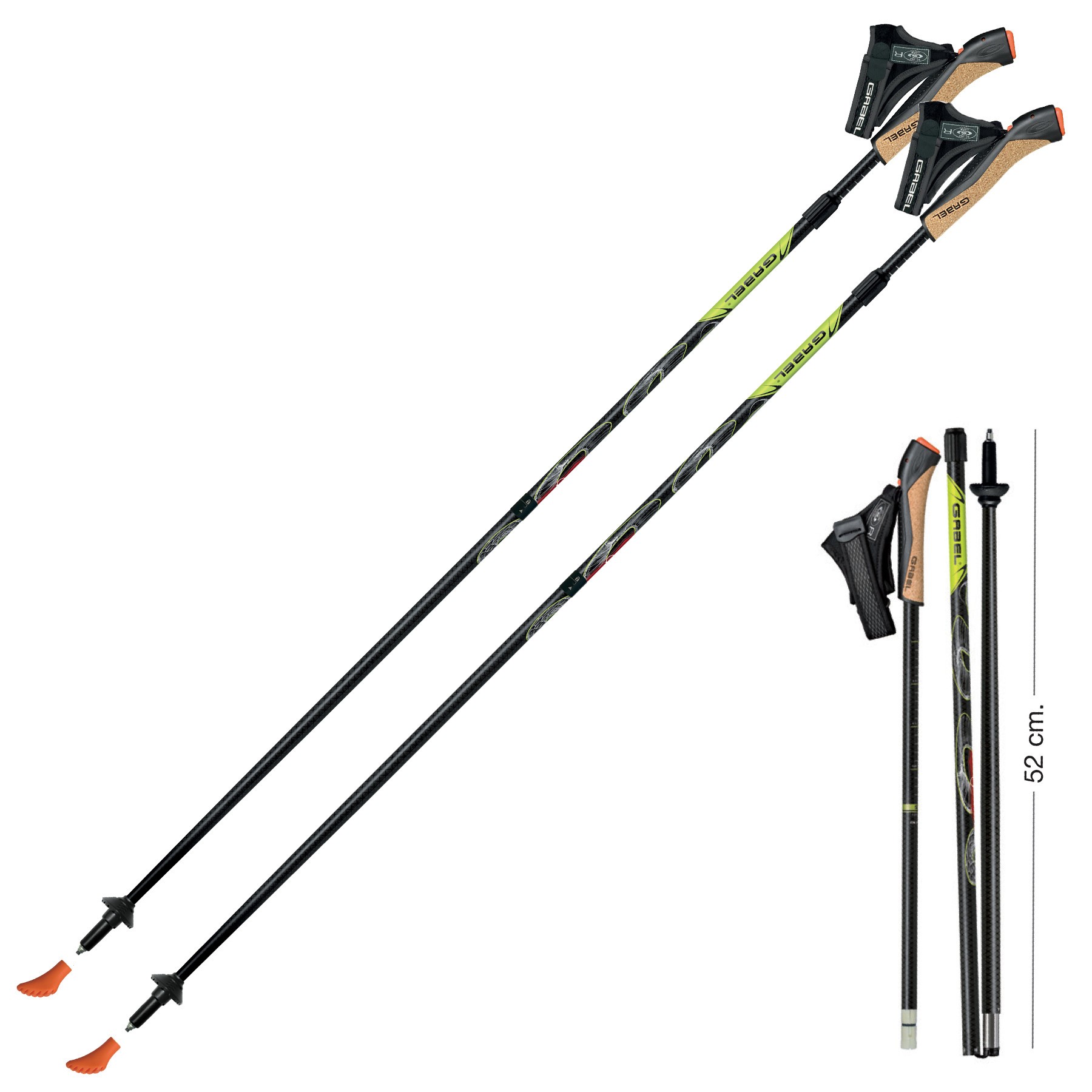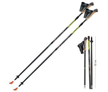 Cobra Re-Volution є флагманської серією компанії Gabel. Чи варто дивуватися тому, що це одні з найсучасніших, надійних і універсальних палиць для скандинавської ходьби Ультралегкі карбонові секції, зафіксовані замками TPL, здатні витримати до 150 кг осьового навантаження при тому що вага однієї палиці становить всього 175 м Це видатна модель для інструкторів , що дозволяє проводити численні інтенсивні заняття. Трисекційні палиці мають верхню (більш зручну) телескопічну систему регулювання висоти в межах від 105 до 130 см і систему складання Twist Lock, завдяки чому в транспортному положенні мають довжину всього 52 см, і компактно вкладаються в комплектний чохол. Нова технологія Snake Carbon, по якій виготовлені карбонові секції палиці, збільшує міцність на злам, зменшує вагу і дозволяє ефективніше гасити вібрації, надаючи палиці привабливий агресивний зовнішній вигляд. Рукоятка має двошарову накладку з кірка, що перешкоджає потовиділенню, і оснащена системою швидкого звільнення ремінця. Потрібний нахил рукоятки, ефективний крій ремінця-рукавички, і форма чобітка сприяють формуванню правильної техніки скандинавської ходьби. Все палиці Gabel мають розширену дворічну гарантію. Компанія Gabel, починаючи з 1956 року, виробляє одні з кращих лижних палиць, палиць для трекінгу і скандинавської ходьби, і може пишатися тим, що її продукція досі має маркування Made in Italy, яка підтверджує високу якість, передовий дизайн, і відповідність вимогам до професійної продукції. Компанія використовує тільки кращі матеріали і технології в своїй галузі, і щодня працює над тим, щоб користувачі продукції Gabel відчували перевагу, і були впевненими у своєму виборі. Компанія Gabel дуже грунтовно відноситься до кожного зі своїх напрямків, співпрацюючи з провідними організаціями в галузі, і беручи участь в розробці методологій. Стоячи біля витоків популяризації скандинавської ходьби в Італії, поряд з A.S.D. (Асоціація нових стежок), Падуанским університетом, і AIMEF (Італійська Асоціація Сімейних Лікарів), компанія Gabel брала безпосередню участь в якості технічного консультанта при доопрацюванні та вдосконаленні техніки занять і комплексу вправ по скандинавської ходьбі. Таким чином, можна не сумніватися, що купуючи палиці для скандинавської ходьби Gabel, Ви отримуєте правильний продукт, який здатний поліпшити результати занять і не нашкодити здоров'ю. Performance - лінійка палиць для скандинавської ходьби, що поєднує мінімальну вагу і максимальну ефективність, призначена для інструкторів, спортсменів і найвимогливіших користувачів, які не шукають компромісів. Лінійка розрахована на частоту занять більше трьох разів на тиждень, і середня вага користувача до 100 кг, маючи при цьому достатній запас міцності, аж до 150 кг. Basket Change - пересування з палицями по м'яких грунтів або снігу буде набагато ефективніше при використанні спеціальних трекінгових або снігових кілець різного діаметра і конфігурації. Дані палиці підтримують можливість зміни кілець. Таким чином, немає необхідності купувати для кожного сезону окремі палиці. Досить укомплектувати палиці необхідними кільцями і відчувати себе впевнено на будь-якій місцевості і при будь-якій погоді. Carbide - наконечники палок грають найважливішу роль: гострі і міцні, наконечники Gabel гарантують надійне зчеплення з будь-яким типом місцевості. Все трекінгові п