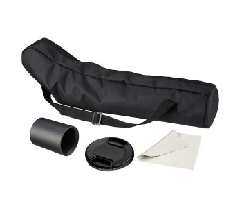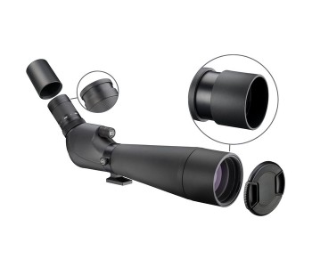 Потовщене гумове покриття чорного кольору надійно захищає прилад від пошкоджень і забезпечує надійне захоплення підзорної труби рукою. Для максимального комфорту спостереження окуляр встановлений під кутом 45º. У комплект поставки входить настільний штатив-тринога для польових спостережень. Труба повертається в хомуті на 340º для досягнення найбільш зручного кута спостережень. Для зручності транспортування і зберігання можна використовувати зносостійкий нейлоновий чохол на замку.