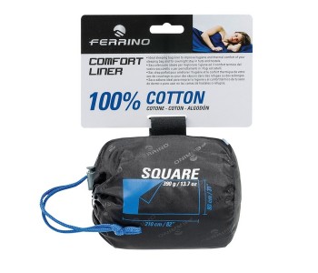 Вкладиш Ferrino Liner Comfort Light SQ Blue - ідеальне рішення для підтримки особистої гігієни при короткочасних ночівлях в хостелах, поїздах, або на природі в спальному мішку. При використанні вкладиша зі спальним мішком досягається більший тепловий комфорт, але головне те, що немає необхідності стирати спальний мішок, який, як правило, вимагає більш делікатного догляду, досить тільки випрати вкладиш. Вкладиш пошитий з 100% бавовни - натурального гігієнічного матеріалу, який є комфортним і приємним для тіла, відмінно провітрюється і не електризується. Упакований в чохол, вкладиш не займе надто багато місця в рюкзаку, а завдяки петлі з текстильною застібкою Velcro, також може бути пристебнутий на рюкзак зовні.