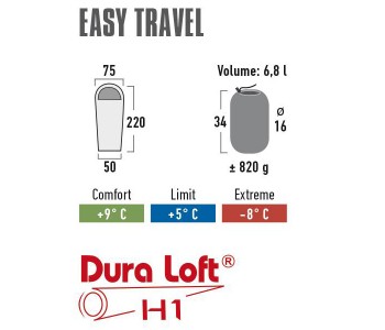 Спальний мішок High Peak Easy Travel відповідає міжнародному стандарту DIN EN ISO 23537 , який унормовує вимоги до розмірів і теплових характеристиках спальних мішків, а також до властивостей тканини і використовуваних матеріалів.