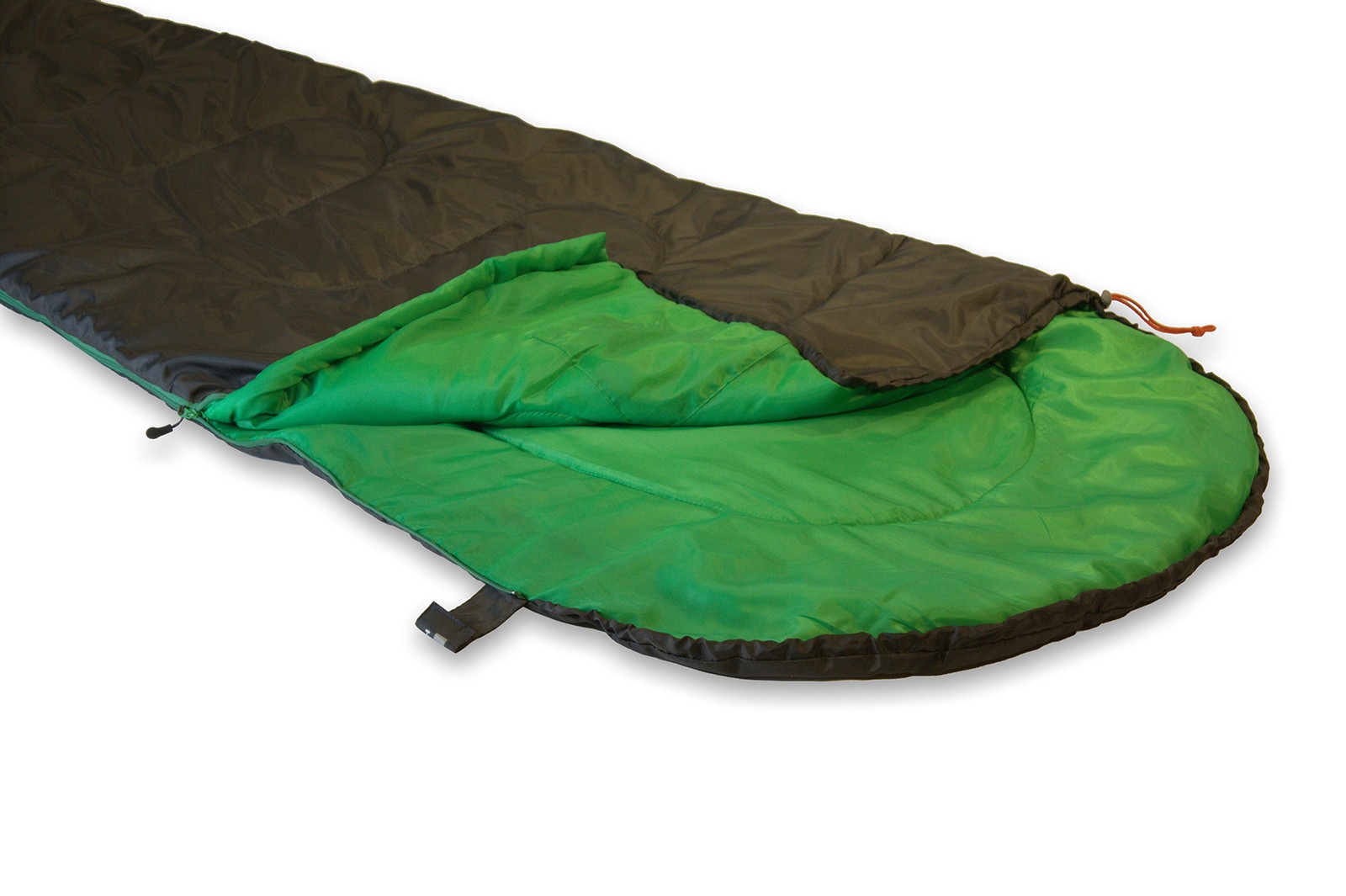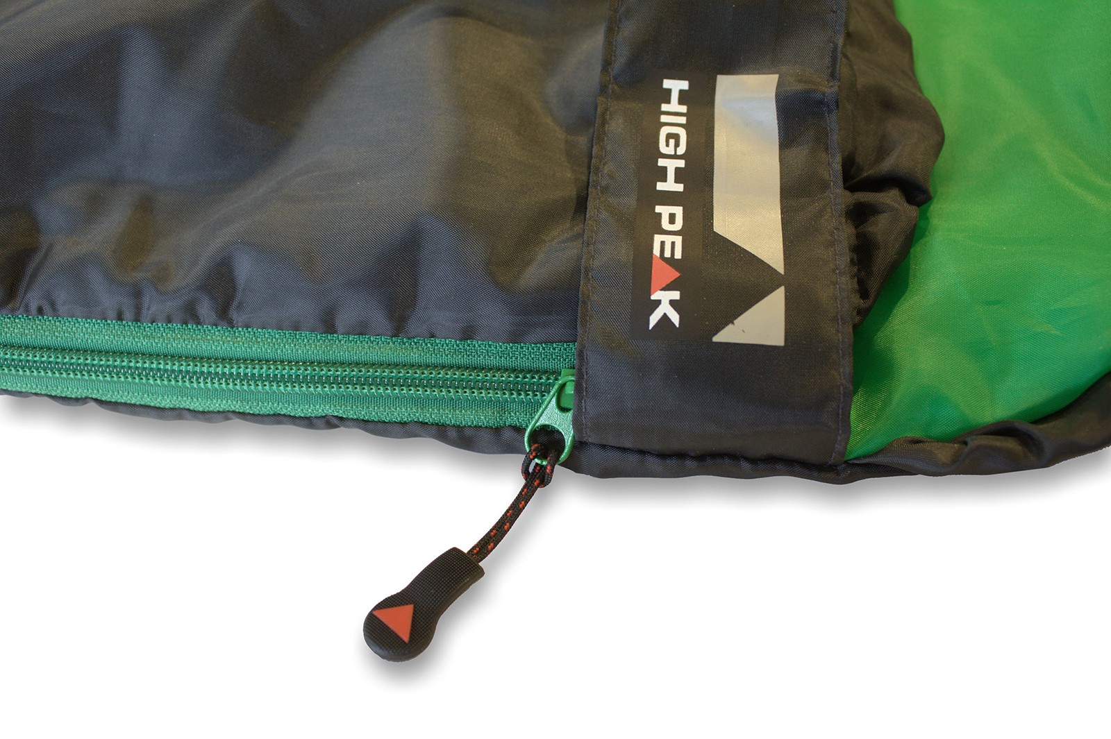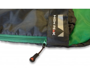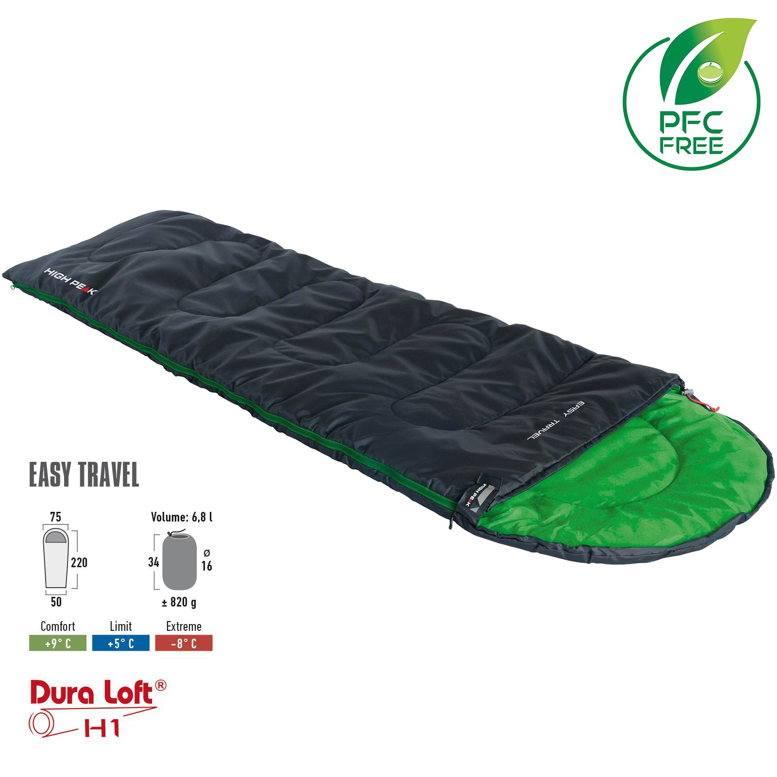 High Peak Easy Travel - легкий спальний мішок, виконаний у формі кокона з невеликим чохлом в комплекті. М'яка зовнішня оболонка не містить PFC-з'єднань, має водовідштовхувальне просочення, виконану за екологічно чистою технологією Bionic-Finish® Eco. Внутрішня підкладка спальника дихаюча і сприятлива для шкіри. Спальний мішок має високоякісний наповнювач Dura Loft® з чудовими ізоляційними властивостями. Матеріал Dura Loft® легко стискається, довговічний, зберігає тепло навіть у вологих умовах, швидко сохне. Спальний мішок High Peak Easy Travel оснащений регульованим капюшоном, внутрішньою кишенею для зберігання цінних речей і довгою двосторонньої блискавкою. Це дозволяє відкрити нижню частину спальника в теплі ночі. Блискавка закрита вітрозахисної перегородкою, застібка має ергономічну форму для зручного хвата рукою. Спальний мішок розрахований на зростання користувача до 190 см, призначений для туристичних походів і відвідування фестивалів.
