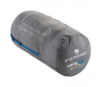 Лінійка Ferrino Yukon представлена широким асортиментом універсальних трьохсезонного спальних мішків в формі кокона, ковдри, а також спеціальними Подовженими спальниками, Спальниками для жінок і дитячими спальними мішками. Абсолютно всі спальні мішки Ferrino Yukon розроблені в першу чергу з метою забезпечення максимального збереження тепла. Саме тому в якості наповнювача в усіх мішках використаний утеплювач H.T.F. Compact, що володіє видатним співвідношенням ваги і термоізоляційних властивостей. Конструкцією спального мішка Ferrino Yukon Plus /+ 4 ° C Blue /Grey ( Left ) Передбачені й інші особливості, що підвищують теплоізоляційні властивості, зокрема утеплювальний борт уздовж блискавки, об'ємний внутрішній комір, анатомічний капюшон і ін. Легкий і міцний матеріал зовнішньої оболонки має посилену структуру Ripstop, що забезпечить додатковий запас надійності. Дана модель відмінно підійде для весняно-осінніх походів по українським Карпатам.