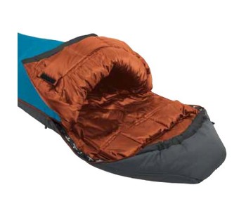 - Форма кокона максимально точно повторює форму людського тіла, завдяки чому підвищує теплоізоляцію, одночасно зменшуючи вагу і розміри спального мішка