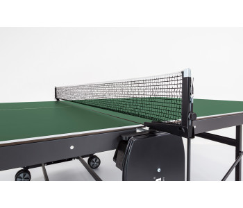 - Комплектується сіткою відповідної Європейським стандартам. Сітка чорного кольору, з натяжним шнуром. Висота регулюється. Сітку можна залишати на столі після гри і не знімати при складанні столу.