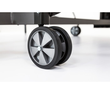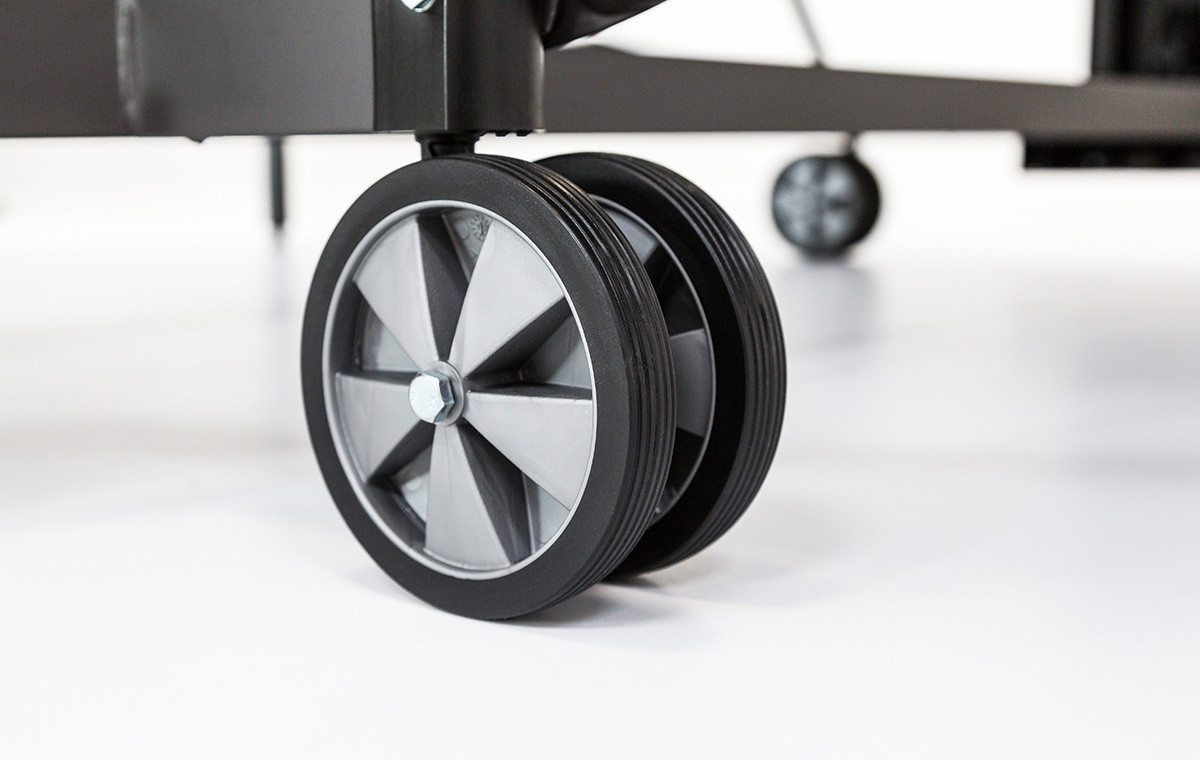 - Стіл легко переміщується на 4-х здвоєних прогумованих колесах діаметром 128 мм, всі колеса маневрені.