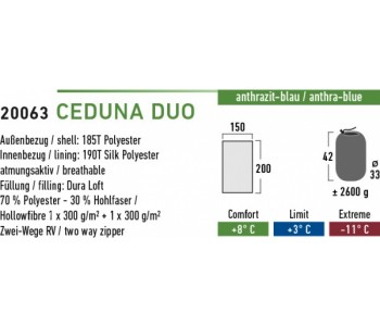 Завдяки фірмовому наповнювача Dura Loft ® в 2 шари по 300 г /м², спальний мішок гарантує вам бокові комфорт при температурі до +3 ° C .