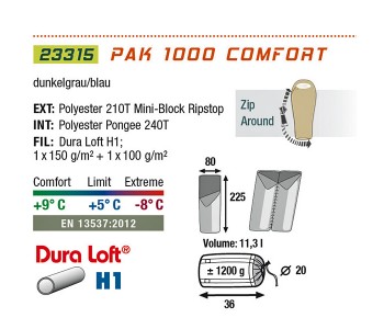 Спальний мішок High Peak Pak 1000 Comfort відповідає Європейському стандарту EN 13 537 : 2012 . (Даний стандарт нормує вимоги до спальних мішків і підтверджує відповідність зазначених температурних режимів на ярликах вироби).