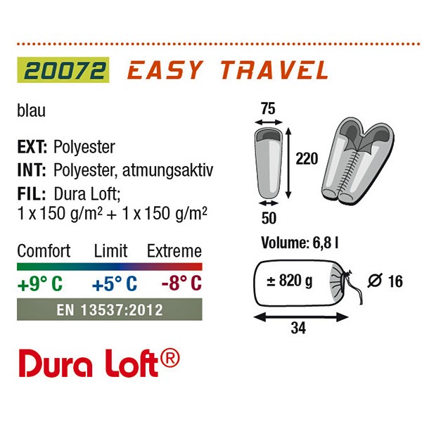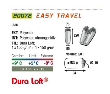Спальний мішок High Peak Easy Travel Відповідає Європейському стандарту EN 13 537 : 2012. (даний стандарт нормує вимоги до спальних мішків і підтверджує відповідність зазначених температурних режимів на ярликах вироби).