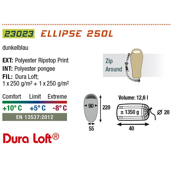 Спальний мішок High Peak Pak Ellipse 250L відповідає Європейському стандарту EN 13 537 : 2012 . (Даний стандарт нормує вимоги до спальних мішків і підтверджує відповідність зазначених температурних режимів на ярликах вироби).