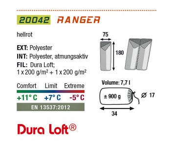 Спальний мішок High Peak Ranger Відповідає Європейському стандарту EN 13 537 : 2012. (даний стандарт нормує вимоги до спальних мішків і підтверджує відповідність зазначених температурних режимів на ярликах вироби).