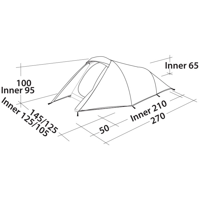 Намет Easy Camp Energy 200 - ідеально підходить для подорожей без нічого, будь-то піший туризм або поїздка на велосипеді. Конусоподібна форма максимально збільшує практичне використання внутрішнього простору, одночасно зменшуючи вагу намету. Всередині спальні можна сидіти, а в тамбурі достатньо місця для приготування їжі і зберігання речей. Регульовані вентиляційні відсіки над вікнами в поєднанні з великою вентиляційною панеллю в задній частині намети забезпечують постійну циркуляцію повітря. Внутрішній намет має D-образну сітчасту двері для захисту від комах і зручну точку підвісу для ліхтаря.