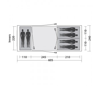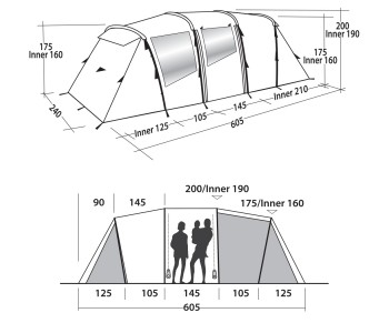- внутрішній намет 1 (Д х Ш х В): 210 х 220 х 190 см