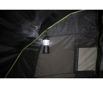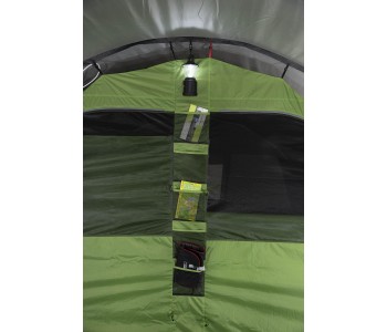 Затемнена спальня не пропускає яскраве світло, дозволяючи виспатися всім, хто пізно встає. Система вентиляції Vario Vent Control забезпечує регульований приплив свіжого повітря у внутрішній намет. Якщо похолодало, просто налаштуйте внутрішню заслінку. Великі двері спальні з москітні сітки захищають від комах і покращують повітропроникність. Дверний клапан на блискавці легко регулюється з внутрішньої сторони і акуратно складається в зручний кишеню для зберігання. Внутрішній намет має універсальну перегородку на блискавці для створення однієї великої спальні або двох роздільних. Організатор і п'ять внутрішніх кишень дозволяють акуратно зберігати все необхідне. Також намет має дві точки кріплення для ліхтаря. High Peak Garda 5.0 - кращий вибір для сімейного кемпінгу.