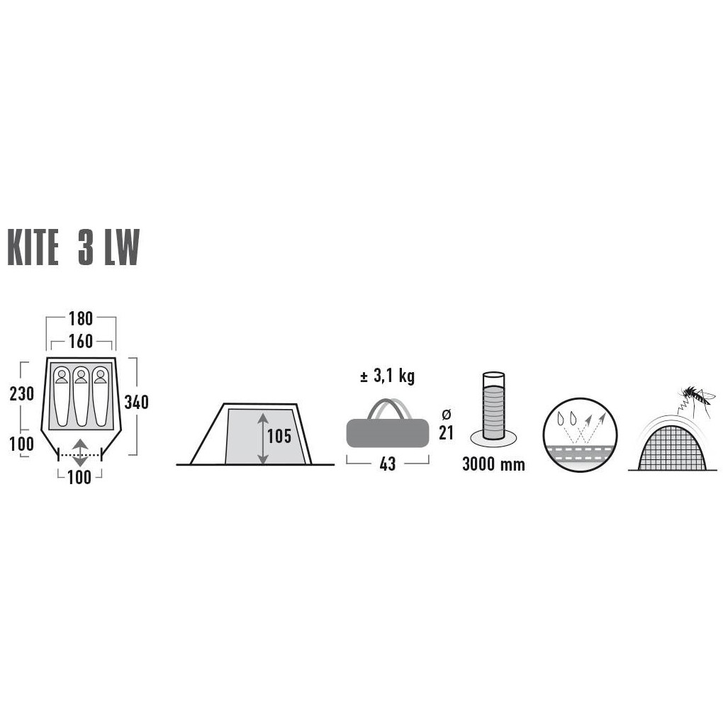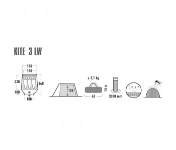 High Peak Kite 3 LW Pesto /Red (10344) має видовжене спальне місце довжиною 230 см і підходить навіть для баскетболіста. Вона розрахована на 2-3 людини і є відмінною наметом для активного відпочинку.