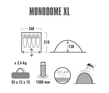 Оновлена модель High Peak Monodome XL 4.0 стане надійним супутником у ваших подорожах. Використання нових високоякісних матеріалів дозволило підвищити ступінь захисту відпочиваючого від шкідливого впливу ультрафіолетових променів відповідно до стандартом - UV STANDARD 801. Внутрішня частина тенту має спеціальне алюмінізірованной покриття, яке забезпечує додаткову термоізоляцію. Швидка установка і збірка, вентиляційний клапан, москітна сітка на вході все, що потрібно для нетривалих подорожей.