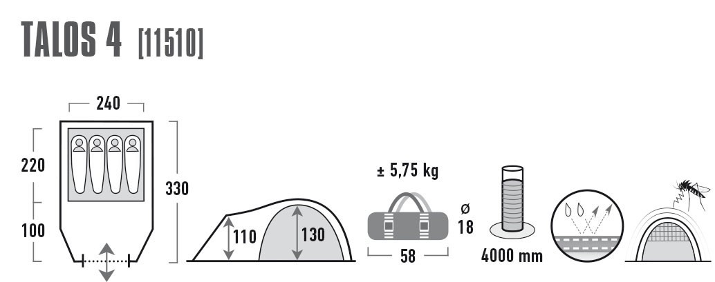 Кемпінговий намет High Peak Andros 4.0 обладнана двома регульованими системами вентиляції Dual Flow Vent System і Vario Vent Control. Дані системи дозволяють створити в наметі максимально комфортний мікроклімат при будь-яких погодних умовах. Затемнена спальня сприяє комфортному відпочинку не тільки вночі, але і в денний час доби. Просторий тамбур дозволяє легко розмістити туристичний інвентар або організувати кемпінгову кухню. Прозорі вікна зі шторами, антимоскітні сітки на вході в намет і в спальний відділ, проклеєні шви, водозахист від дощу в 4000 мм і багато іншого дозволять використовувати намет повноцінно як у базовому таборі, так і для сімейного відпочинку на природі.