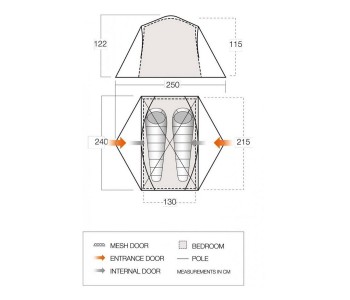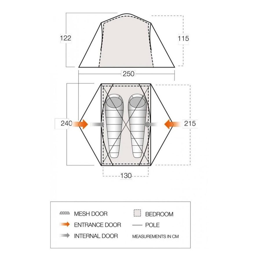 - Матеріал зовнішнього тенту: ProTex® Shield, легкий і міцний матеріал Polyester 70D, 3000 мм водяного стовпа, проклеєні шви. Розроблено ексклюзивно для Vango