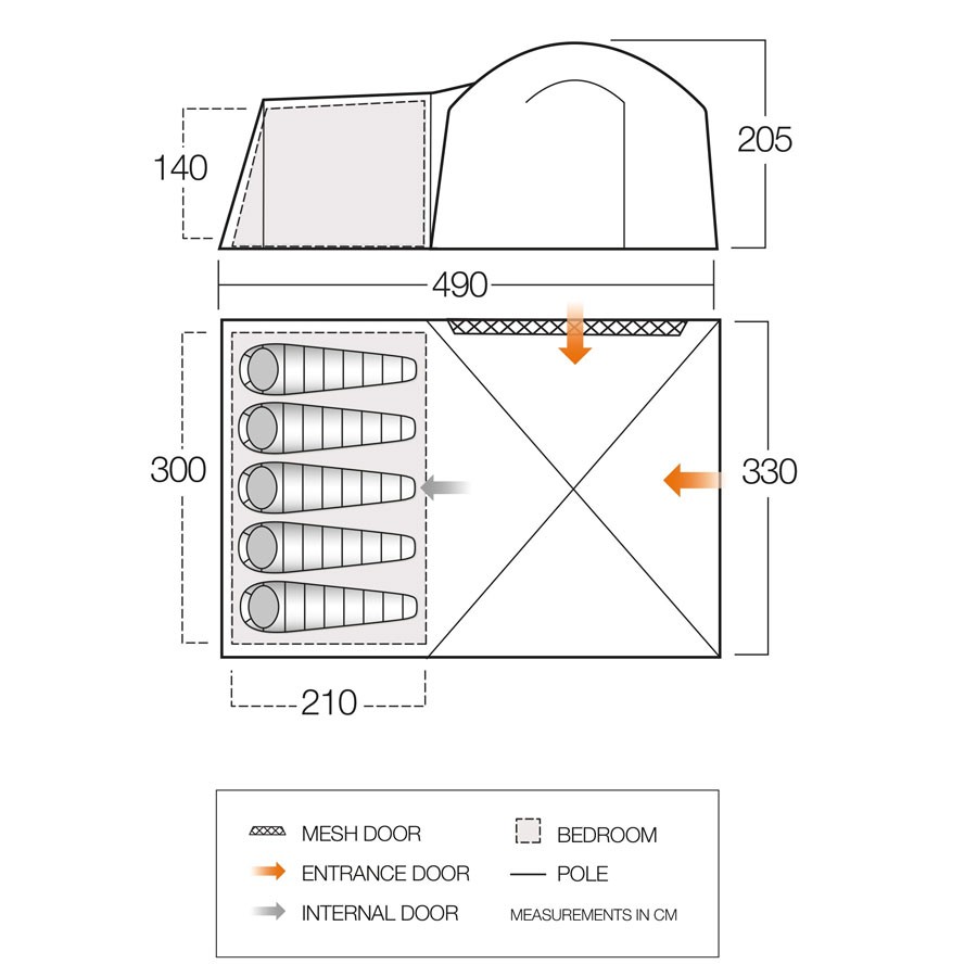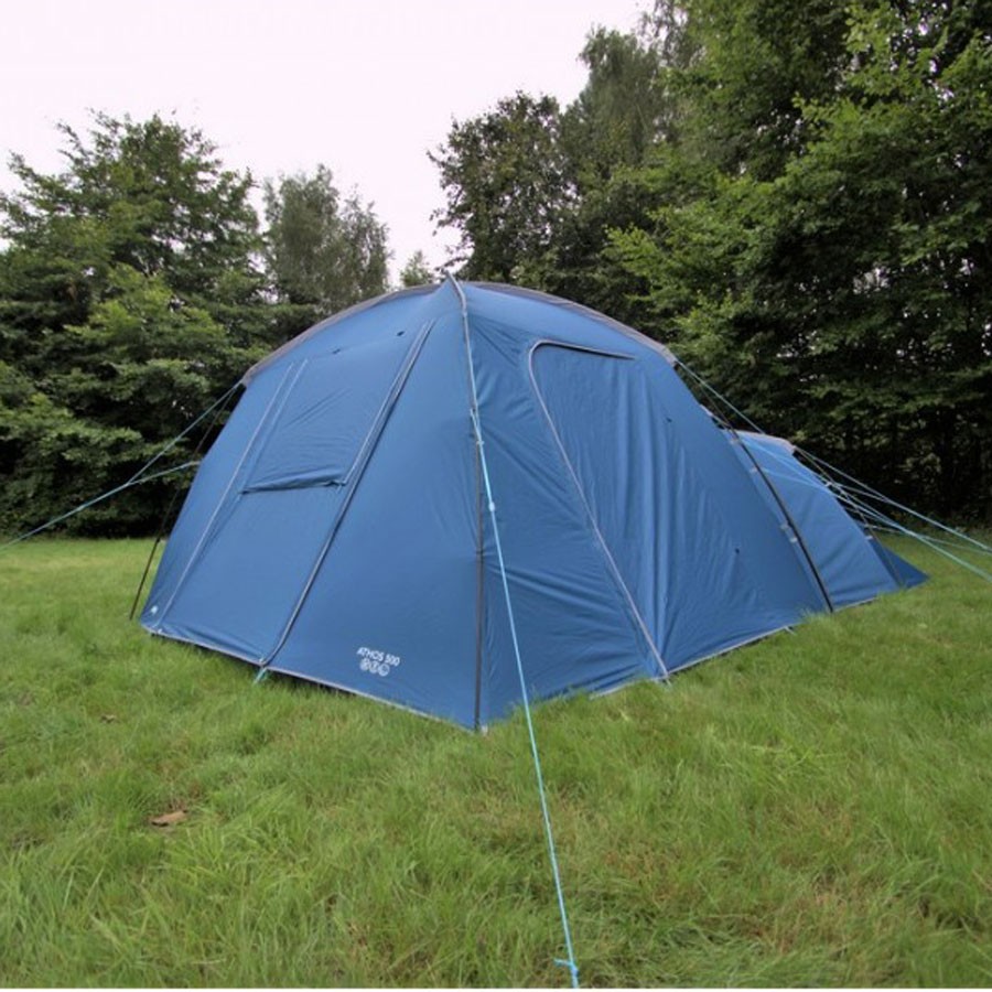 Новинка 2020 роки від Vango! Намет Vango Athos 500 Moroccan Blue - чудовий вибір для сімейного відпочинку на вихідні дні, дозволяє легко розміститися 5 людей прийшов. Велике вікно Diamond Window і додаткові двері наповнюють вітальню світлом, а також створюють відмінну вентиляцію без доступу настирливих комах. Інноваційна спальня Nightfall Bedroom забезпечує затемнене простір для денного сну найменших туристів після активних ігор на природі. Гібридна конструкція намету Athos 500 складається з двох зон: вітальня в купольної формі з двома входами і висотою стелі 205 см, у другій зоні намети розміщена простора тунельна спальня розміром Queen-size. Каркас палатки складається з дуг Powerflex®, що підвищує міцність до вигинів при вітрових навантаженнях. Зовнішній тент виготовлений з тканини ProTex® Shield , Яка Розроблена ексклюзивно для компанії Vango, щоб захистити влітку від розпеченого сонця, а в негоду - від дощу і вітру. Можливість установки одночасно зовнішнього тенту із закріпленою в ньому внутрішньої наметом гарантує, що навіть при установці в дощ вона залишиться сухою. Крім того, намет має досить високий рівень водозащити. Дана модель палатки пройшла випробування на безпеку Згідно Міжнародного стандарту ISO5912 .