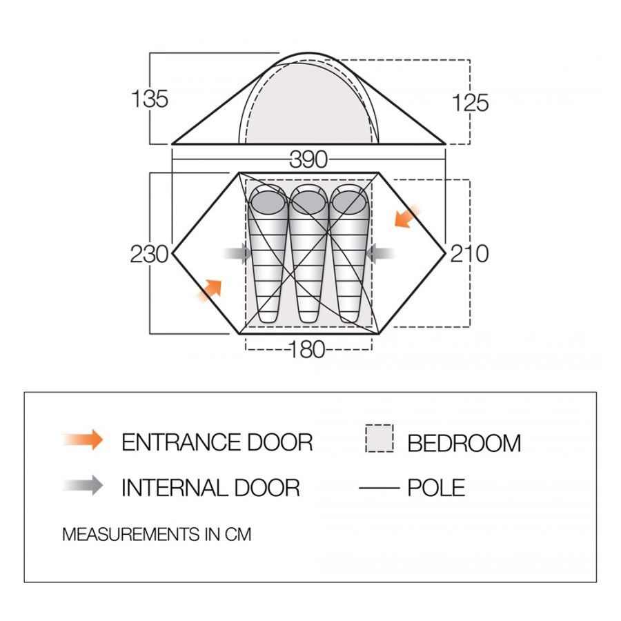 Внутрішній намет кріпиться в зовнішньому тенту таким чином, щоб їх можна було встановлювати і збирати одночасно, що значно економить час установки, а при установки намети під час дощу збереже внутрішній намет сухий.
