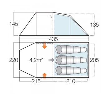 - Внутрішній намет (ДхШхВ), мм 2100 х 2050 х 1350