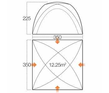 Зовнішня намет (Д х Ш х В): 350 х 350 х 225 см