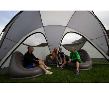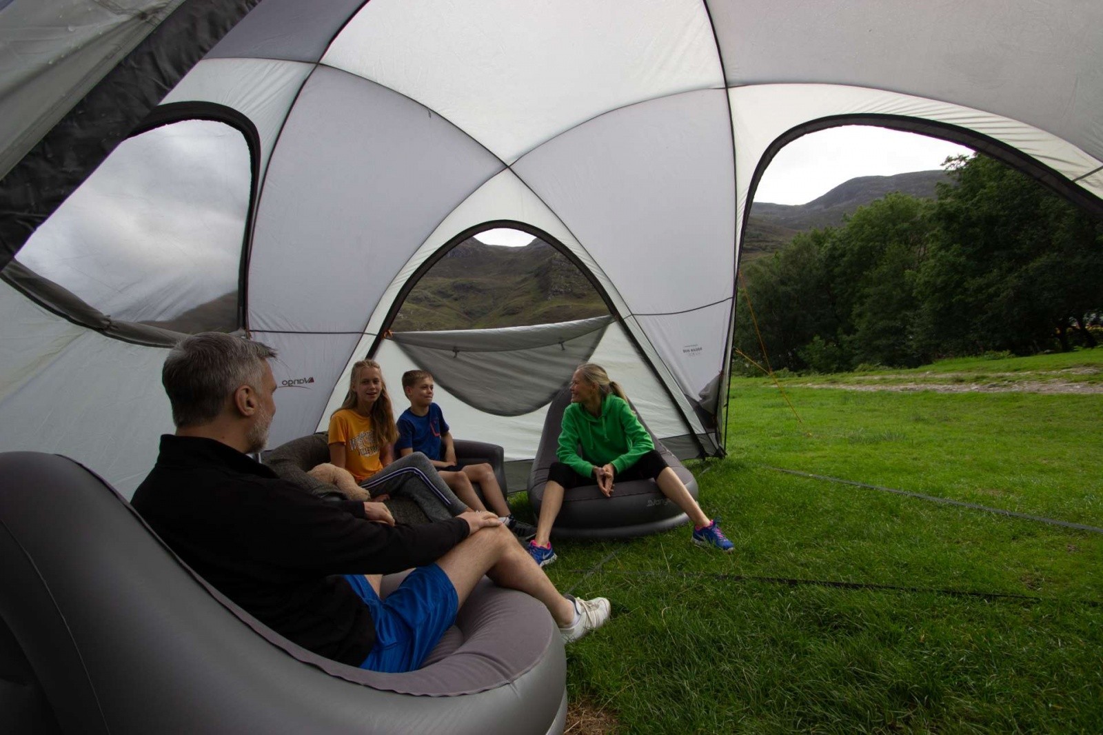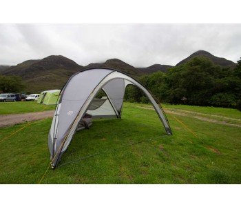 Vango Hogan Hub Cloud Grey - середньорозмірний кемпінговий намет-павільйон, в якому можна сховатися від сонця або дощу, організувати спілкування з друзями, активні ігри з дітьми або просто відпочити. Всі четверо дверей на блискавки, щоб захистити відпочивальників від негоди. Варто відзначити, що тент намету має значний ступінь водонепроникності, а свободностоящий каркас складається з несучих дуг, що мають чотири точки перетину, володіє високою жорсткістю конструкції, яка протистоїть вітровим навантаженням. Т Ент Виготовлений з тканини Sentinel Active, яка розроблена для забезпечення відмінної якості і мінімальної ваги. У тканину вплетена поліефірна нитка, яка на 97% захищає внутрішній простір від УФ-променів сонця. Крім того, намет має досить високий рівень водозащити. Дана модель палатки пройшла випробування на безпеку Згідно Міжнародного стандарту ISO5912 .