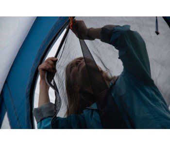 Сетчатая двері збільшує приплив свіжого повітря в намет і захищає від комах.
