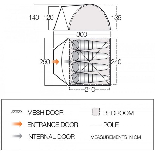 Чотиримісний туристичний намет Vango Tay 400 Treetops підходить для початківця і досвідченого туриста. Мініатюрна форма намети забезпечує додаткову стійкість в погану погоду і збільшує внутрішній простір. Комфорт сну забезпечує дихаючий матеріал Polyester і затемнена внутрішня частина намети. Намет Vango Tay 400 Treetops має тамбур зі своїм знімною підлогою, що вирішує питання, де залишити взуття, верхній одяг і Свій інвентар. Сама намет легко і просто встановлюється за 10 хвилин однією людиною, а про Бщий вага 4.79 кг і компактна сумка-чохол дозволяє розміщувати її в рюкзак середнього об'єму. Дана модель палатки пройшла випробування на пожежостійкість матеріалів і протестована погодними факторами Відповідно до Міжнародного стандарту ISO5912 і Європейському стандарту безпеки EN5912.