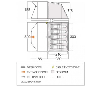 Спеціальний порт для прокладки електричних кабелів всередині намету, при необхідності можна підключити електроприлади, будучи в облаштованому кемпінг-містечку.