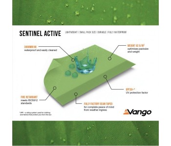 Матеріал покриття: Sentinel Active, вага матеріалу 62 г /м2, c фільтром UPF 30+, 3000 мм водяного стовпа, проклеєні шви. Розроблено ексклюзивно для Vango
