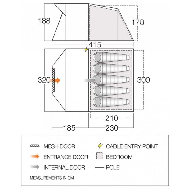 Великий тамбур створює додатковий простір намети і навіс від сонця або дощу, дозволяючи розмістити багаж, організувати кемпінгову кухню або місце для відпочинку.