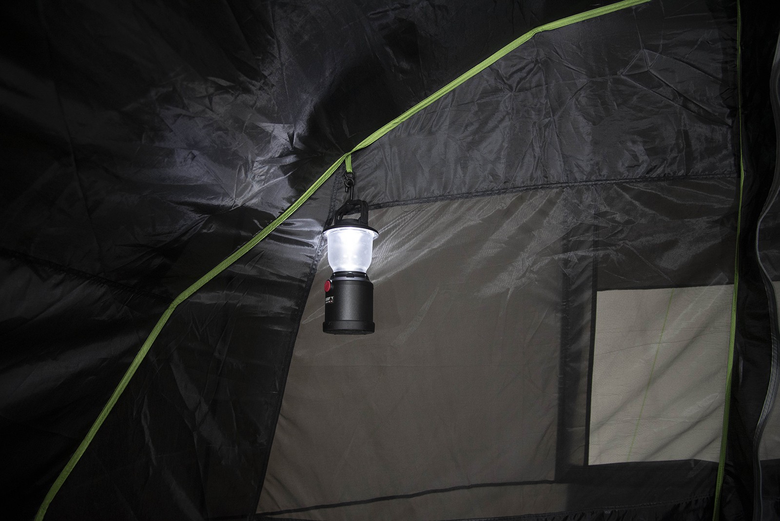 Затемнена спальня не пропускає яскраве світло, дозволяючи виспатися всім, хто пізно встає. Система вентиляції Vario Vent Control забезпечує регульований приплив свіжого повітря у внутрішній намет. Якщо похолодало, просто налаштуйте внутрішню заслінку. Великі двері спальні з москітні сітки захищають від комах і покращують повітропроникність. Дверний клапан на блискавці легко регулюється з внутрішньої сторони і акуратно складається в зручний кишеню для зберігання. Внутрішній намет має універсальну перегородку на блискавці для створення однієї великої спальні або двох роздільних. Організатор і п'ять внутрішніх кишень дозволяють акуратно зберігати все необхідне. Також намет має дві точки кріплення для ліхтаря. High Peak Garda 4.0 - кращий вибір для сімейного кемпінгу.