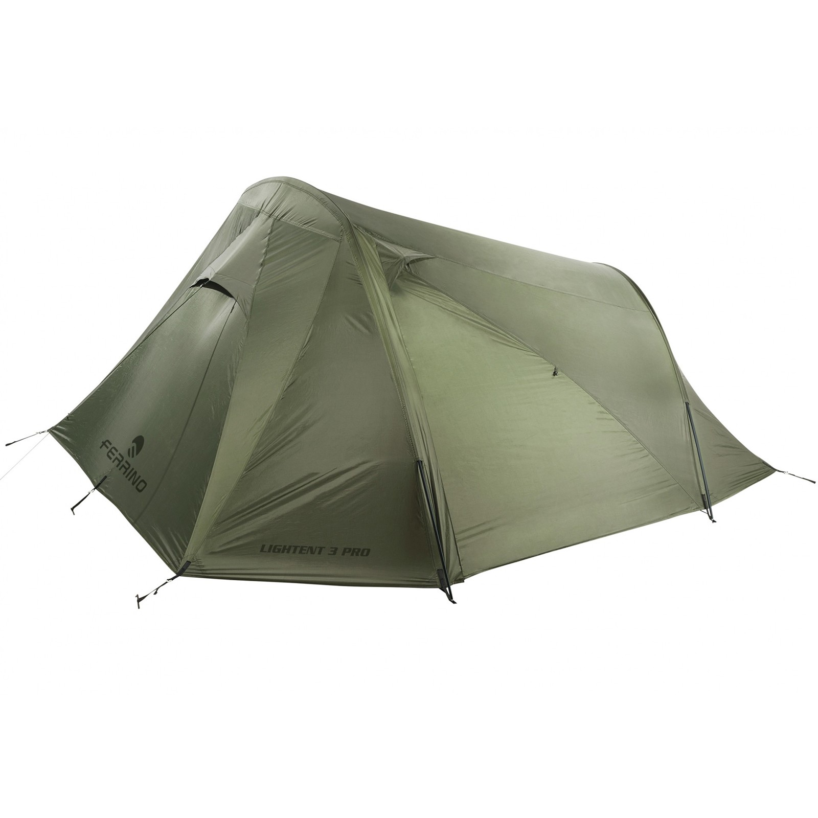 Новинка 2021 года! Намет Ferrino Lightent 3 Pro відноситься до серії ультралегких наметів Light Line. Дана модель має підвищену до 8000 мм вод. ст. водонепроникність дна намету і підійде не тільки для літніх, а й для весняно-осінніх походів, коли можливе випадання великої кількості опадів. Внутрішній намет повністю складається з москітної сітки і попередньо прикріплена до зовнішнього тенту для швидкості установки. Зовнішній тент світло-сірого кольору буде нагріватися на сонці значно менше, ніж моделі з темним тентом. Тунельна конструкція даної намети забезпечує мінімальну вагу при великому обсязі внутрішнього простору, чому сприяють попередньо вигнуті алюмінієві дуги. Установка такого намету займає мало часу і зажадає мінімум місця. Не дивлячись на те, що намет двошаровий і має два тамбура, її вага в зборі становить всього 2,75 кг. Зовнішній тент має водозащиту 3000 мм вод. ст., що є цілком достатнім, щоб зберегти намет сухий всередині під час дощу. Ефективна система вентиляції Camera Air доповнена бічним вентиляційним вікном, що допоможе уникнути утворення конденсату. Чохол намети має компресійні стяжки, що дозволяє домогтися дуже компактних розмірів упакованої намети.