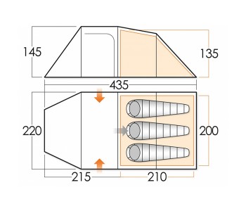 Зовнішня намет (ДхШхВ), мм: 4350 х 2200 х 1450