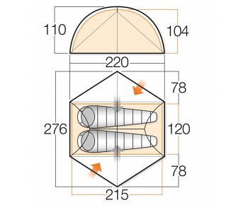 Для полегшення, швидкої і правильної установки внутрішнього намету, по відношенню до зовнішньої, застосована кольорове маркування фастексами і опорних дуг.