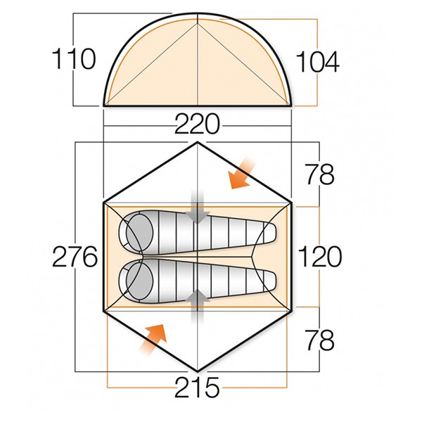 - Матеріал покриття: Protex® 70 D ( Polyester), 5000 мм водяного стовпа, проклеєні шви. Розроблено ексклюзивно для Vango.