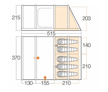 просторий і високий тамбур ідеально підходить для розміщення багажу чи організації кемпінгових кухні.