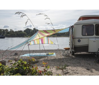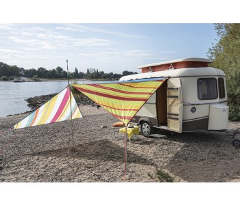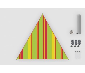 High Peak Bent Caribbean Canvas AO Stripe Lime Punch - яскравий модульний тент, багатофункціональний і дуже простий в установці. Завдяки наявності застібок-блискавок на кожній зі сторін, може з'єднаються з аналогічним тентом для створення різних варіантів укриття від сонця. Має досить невелику вагу і компактні розміри в складеному вигляді. Виготовлений з міцної поліестерової тканини 150D з поліуретановим покриттям і герметичними швами. Тканина має захист від ультрафіолету UV60 (Стандарт 801). UV Standard 801 - одна з найсуворіших систем тестування і сертифікації затінюють тканин. Конструкція рівнобедреного трикутника і посилені люверси по кутах забезпечують оптимальне натяг тенту. Ідеально підходить для кемпінгу, автобудинків, використання на пляжі, в саду, на рок-фестивалях і під час відпочинку.