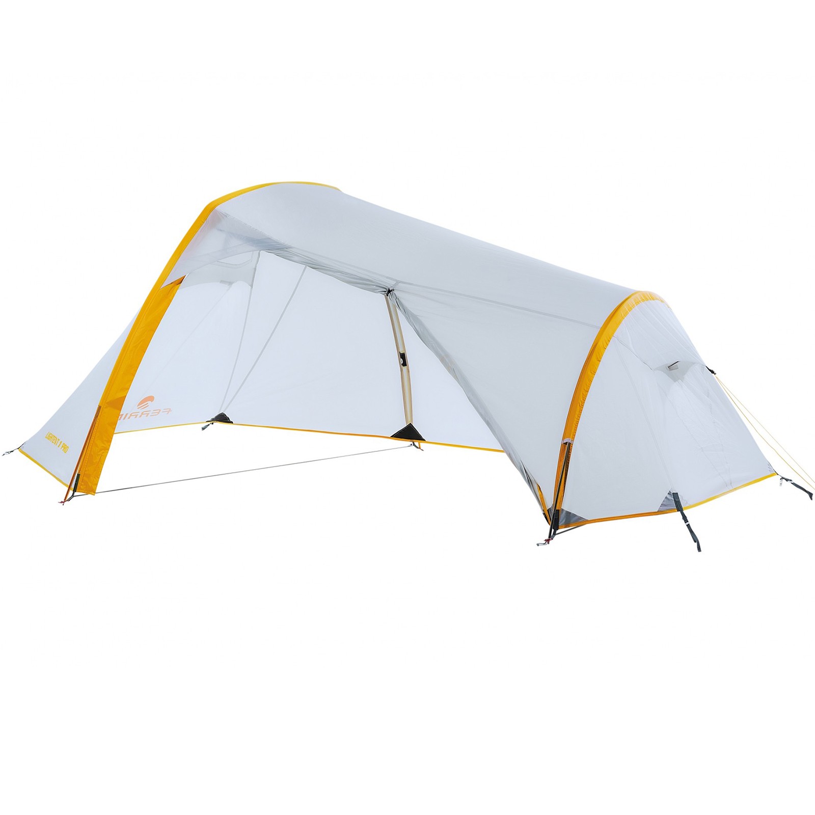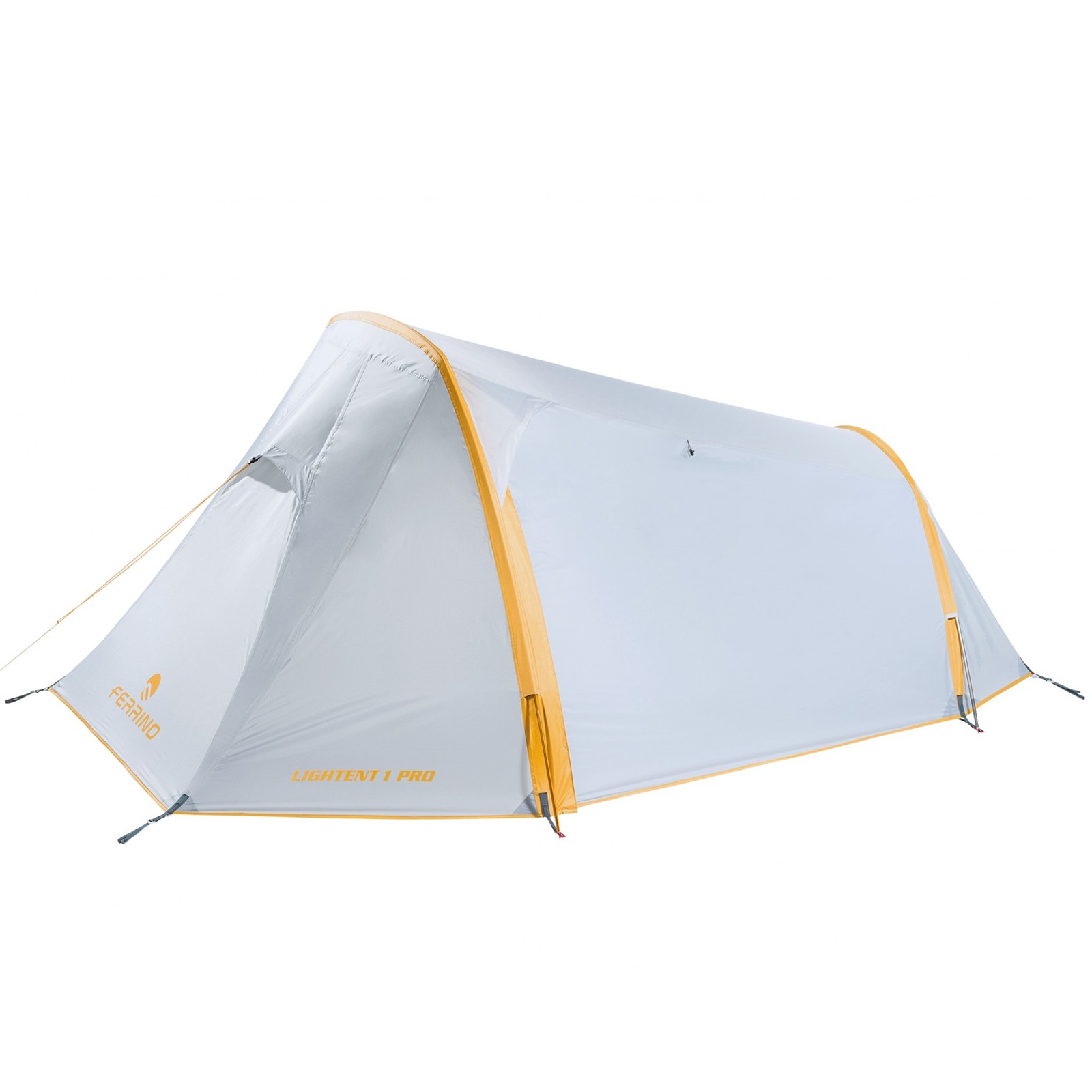 Новинка 2021 года! Намет Ferrino Lightent 1 Pro відноситься до серії ультралегких наметів Light Line. Дана модель має підвищену до 8000 мм вод. ст. водонепроникність дна намету і підійде не тільки для літніх, а й для весняно-осінніх походів, коли можливе випадання великої кількості опадів. Внутрішній намет повністю складається з москітної сітки і попередньо прикріплена до зовнішнього тенту для швидкості установки. Зовнішній тент світло-сірого кольору буде нагріватися на сонці значно менше, ніж моделі з темним тентом. Тунельна конструкція даної намети забезпечує мінімальну вагу при великому обсязі внутрішнього простору, чому сприяють попередньо вигнуті алюмінієві дуги. Установка такого намету займає мало часу і зажадає мінімум місця. Не дивлячись на те, що намет двошаровий і має тамбур, її вага в зборі становить всього 1,55 кг. Зовнішній тент має водозащиту 3000 мм вод. ст., що є цілком достатнім, щоб зберегти намет сухий всередині під час дощу. Ефективна система вентиляції Camera Air доповнена бічним вентиляційним вікном, що допоможе уникнути утворення конденсату. Чохол намети має компресійні стяжки, що дозволяє домогтися дуже компактних розмірів упакованої намети.