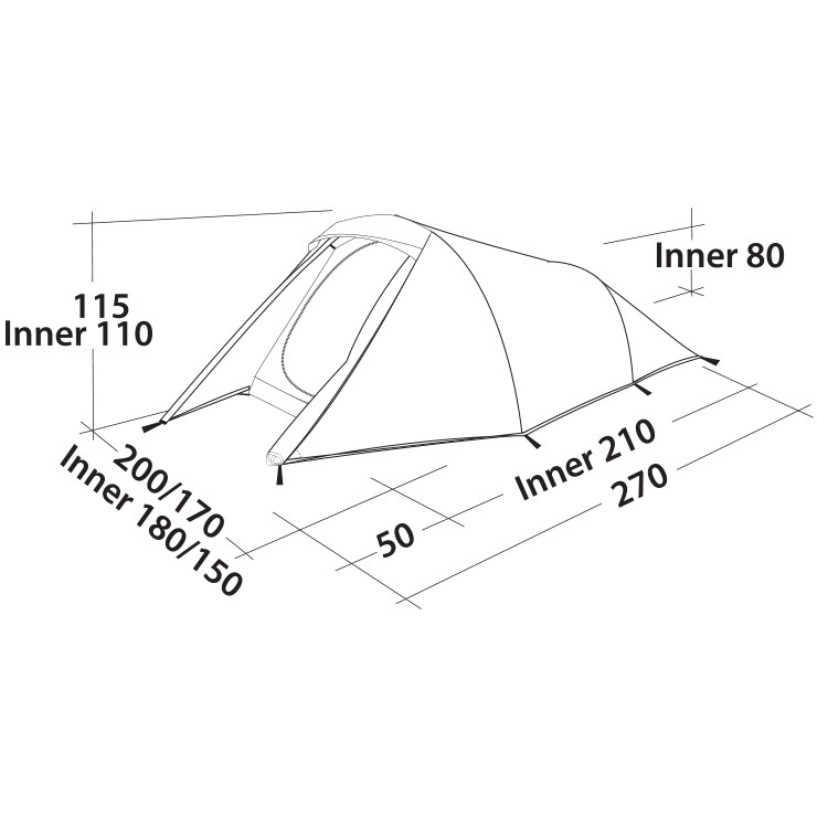 Намет Easy Camp Energy 300 - ідеально підходить для подорожей без нічого, будь-то піший туризм або поїздка на велосипеді. Конусоподібна форма максимально збільшує практичне використання внутрішнього простору, одночасно зменшуючи вагу намету. Всередині спальні можна сидіти, а в тамбурі є місце для приготування їжі і зберігання речей. Регульовані фронтальні вентиляційні вікна в поєднанні з великою вентиляційною панеллю в задній частині намети забезпечують постійну циркуляцію повітря. Внутрішній намет має D-образну двері з москітної сітки для захисту від комах і зручну точку підвісу для ліхтаря.