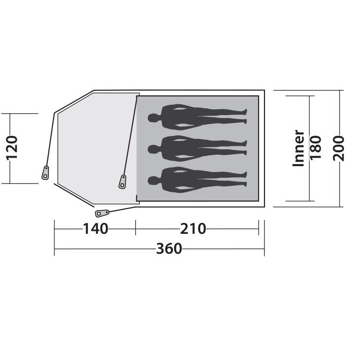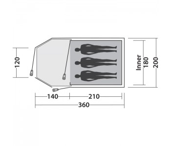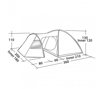 Easy Camp Eclipse 300 - купольна палатка з тунельним входом для комфортного сну трьох осіб. Третя дуга створює місткий тамбур зі знімним підлогою для розміщення похідного інвентарю, необхідного для відпочинку на природі. Прозорі вікна наповнюють внутрішній простір світлом. Велика вхідні двері, а також двері збоку забезпечують зручний доступ всередину. Регульовані вентиляційні вікна у фронтальній і в верхній частині намети сприяють постійної циркуляції повітря. Внутрішній намет має D-образну двері з москітної сітки для захисту від комах і зручну точку підвісу для ліхтаря. Місткий тамбур і комфортна спальня в поєднанні з компактним розміром сумки-чохла роблять цей намет ідеальної для туристів, які подорожують на невеликому автомобілі.