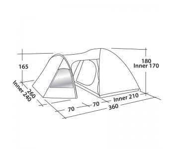 Easy Camp Blazar 400 - чотиримісна купольна палатка, яка ідеально підходить для сімейного відпочинку. У даній моделі досить просторий тамбур зі знімним підлогою і дві вхідні двері для зручного доступу. Прозорі вікна наповнюють внутрішній простір світлом, а штори сприяють самоти в разі потреби. Фронтальні регульовані вентиляційні вікна в поєднанні з великою вентиляційною панеллю в тильній частині намети забезпечують необхідну циркуляцію повітря. Внутрішній намет має D-образну двері з москітної сітки для захисту від комах і точку підвісу для ліхтаря.