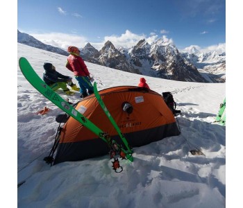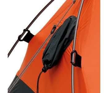Ferrino Maverick 2 (10000) Orange /Gray відноситься до серії наметів HighLab, що відповідають найвищим вимогам і є ідеальною наметом для складних сходжень в альпійському стилі, особливо в кліматичних зонах з високою вологістю і великою кількістю опадів. В силу мінімальної площі установки дану модель можна рекомендувати для скелелазів, що встановлюють намети вузьких полицях скельного рельєфу. Мініатюрна конструкція з подвійним перетином дуг гарантує підвищену стійкість намети при значних снігових і вітрових навантаженнях. Легкий і міцний матеріал тенту і підлоги стійкий до навантажень на розрив і стирання. Тент виконаний і мембранного матеріалу, що забезпечує як високу ступінь водонепроникності, так і високу ступінь повітропроникності. Водозахист зовнішнього тенту становить 10000 мм в. ст., а підлоги - 8000 мм в. ст., що більш ніж достатньо для того, щоб при правильній розтяжці намети зберегти її сухою зсередини при затяжних або інтенсивних опадах. Установка такого намету в гарну погоду не вимагає фіксації кілочками і розтяжками. Три вентиляційних вікна забезпечують необхідне провітрювання в жарку погоду, при цьому передбачена можливість відкриття /закриття вентиляційних вікон, що дуже важливо в дощову погоду, шторм або при низьких температурах. Чохол намети має компресійні стяжки, що дозволяють упакувати намет максимально компактно.