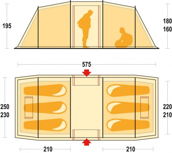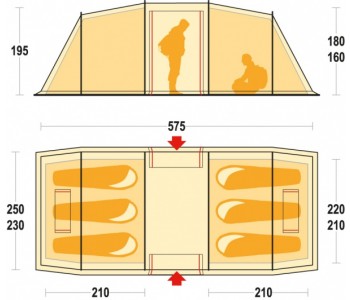 - Усередині намет розділена тамбуром на 2 окремих спальних приміщення, забезпечуючи необхідний рівень комфорту і приватності